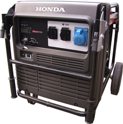 Honda típusú 7 kVA teljesítményú inverteres, egy fázisú mobil áramfejlesztő.